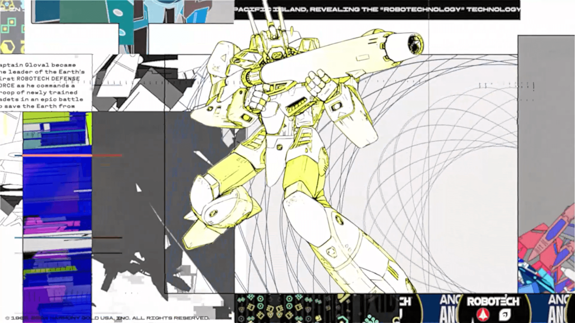 Shakers, the Yuzu Protoculture Energy jar, and the exclusive Minmay coin were animated with the same narrative gravity as the character art. Slow, orbiting hero moves that escalate into aggressive, anime-style reveals. I designed the cockpit graphics, reticle grids, and panel-based backdrops as modular motion assets so every product moment could snap into the Robotech UI language.
